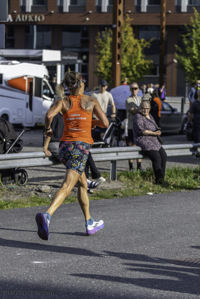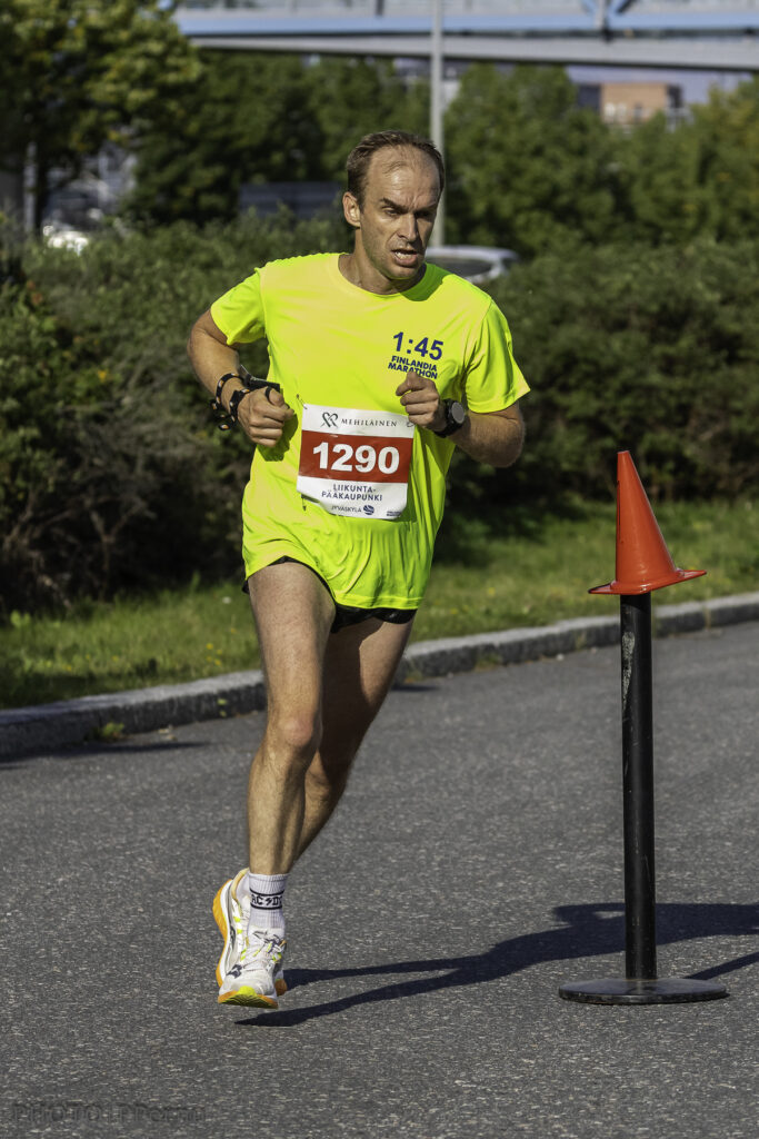 Puolimaratonilla oli lämmin ja Hippoksen maratonkerholaisia oli runsaasti mukana. Kovin vähän enää tunnistan uusia kerhon juoksijoita, joten näillä kuvilla mennään! Jaakko Kärsämä oli Hippoksen maratonkerhon nopein ja sijoittui viidenneksi ajalla 1:22.09. Kova aika. Kuvat Pertti Pernu, Canon R5mk2 + RF100-500 f4,5-7.1 L IS USM.